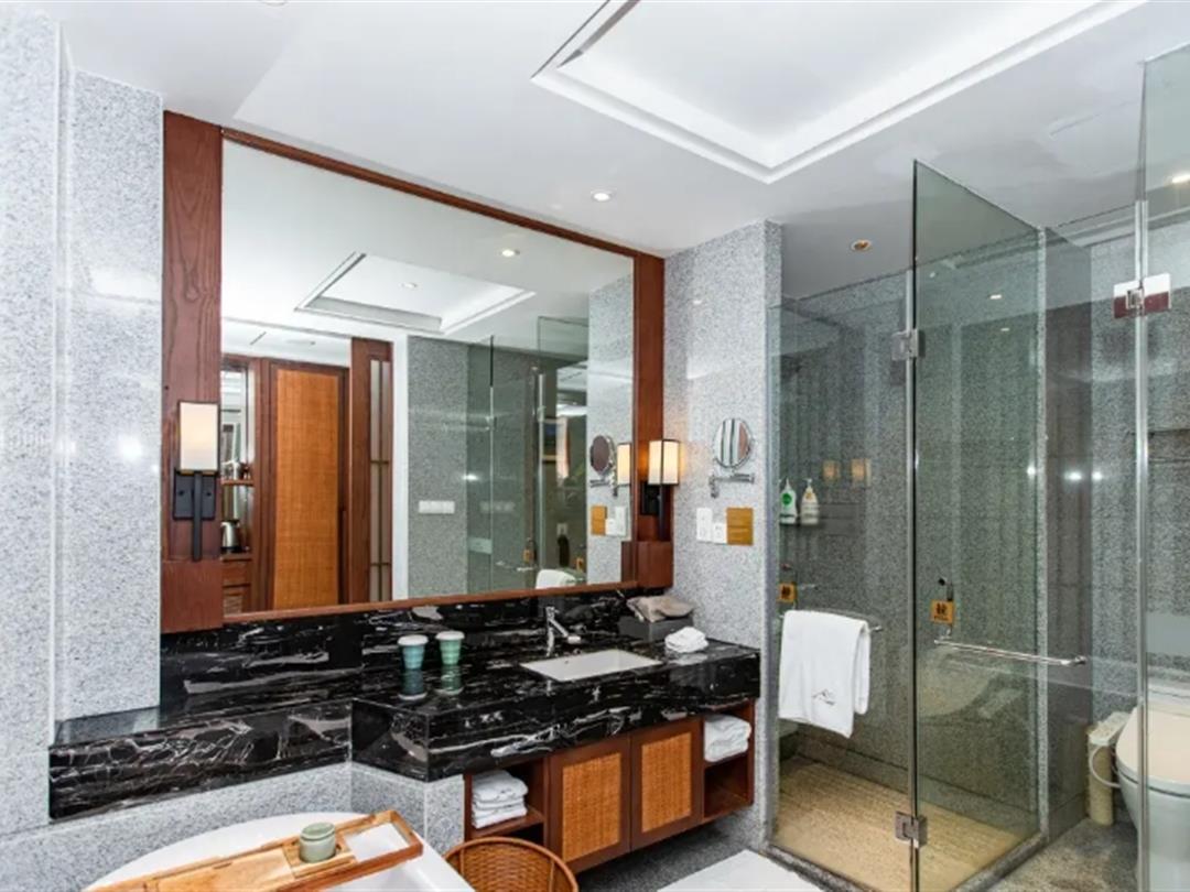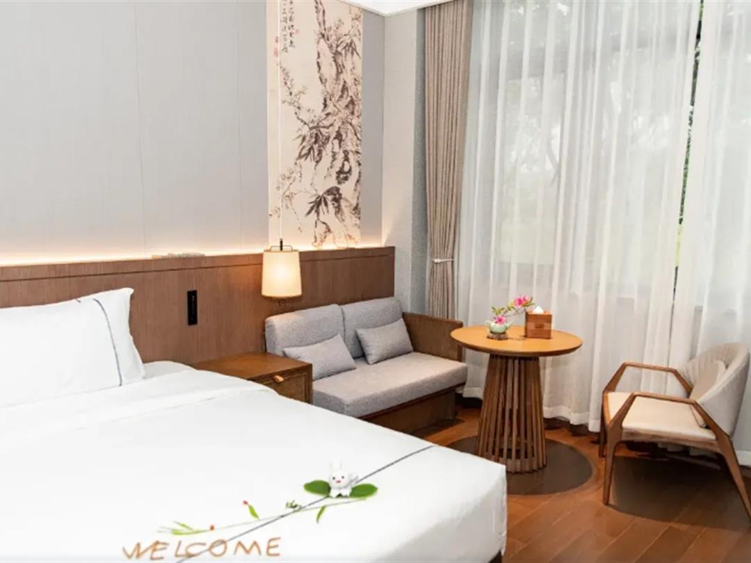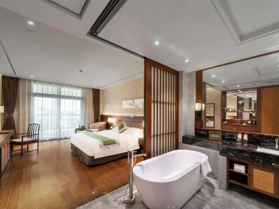 酒店拥有188间全景观式的客房及套房,推窗见山,入眼皆是会稽山的葱茏叠翠。42㎡起跳的客房,宽敞明亮,糅合当代简约设计风尚。