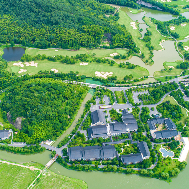 绍兴会稽山阳明酒店藏于绍兴市区城东的会稽山旅游度假区,占地面积300亩,毗邻千年会稽山及浩渺洄涌湖,建筑面积约45000㎡,离市中心约10分钟车程,离尘不离城的选址,享有“被都市珍藏的自然”之美誉。