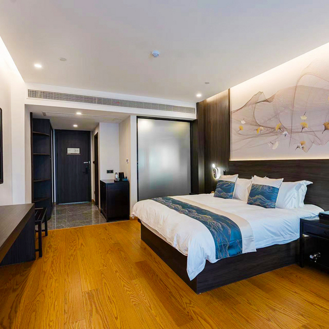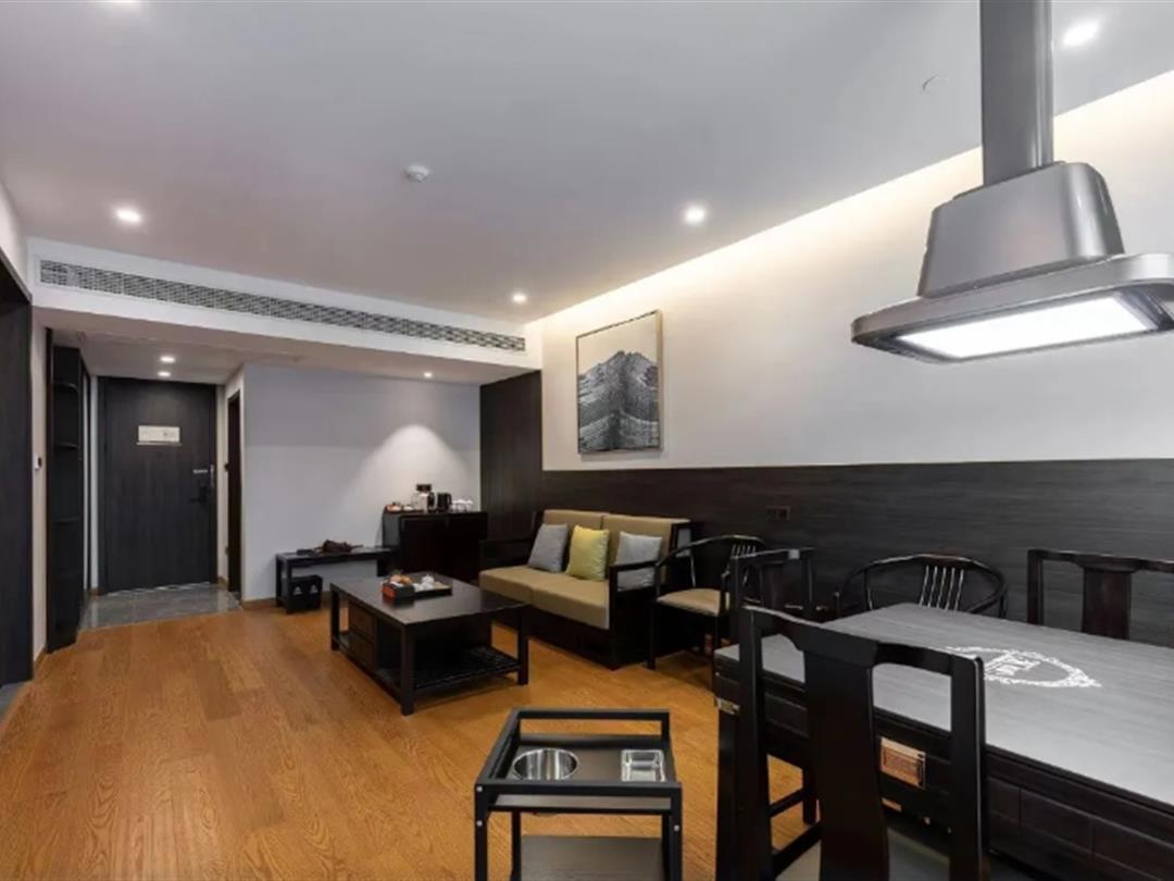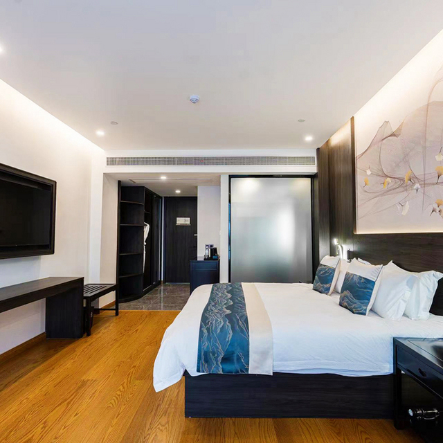酒店客房/套房共有177间,面积35㎡起,陈设布局方正、大气,简约的中式家具,清新淡雅的中国风壁画…有着写意之美,营造出令人放松的温馨环境。一整面窗带来良好的采光,明亮而通透。
