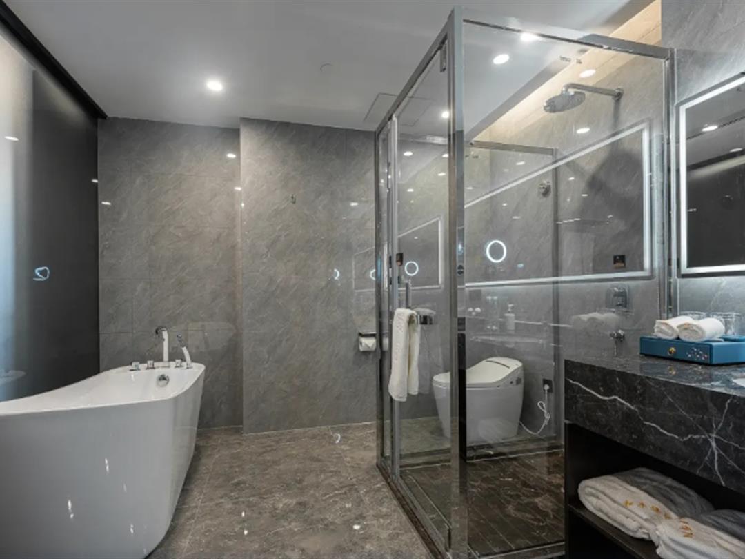 房内配套齐全,智能化设施提升居住便捷度和舒适感。细节之处可圈可点,卫生间与衣柜都是感应灯,马桶盖是加热的,镜子自带灯带,带小朋友入住,提供儿童用品。
