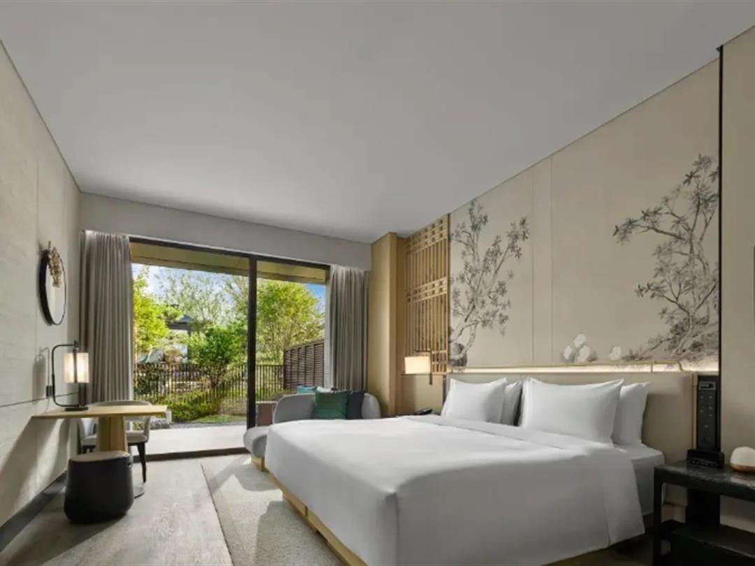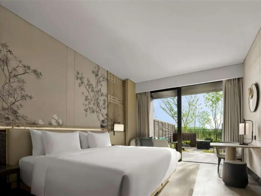 210间客房及养修房:庭院房、园景房、田园房、花岛房、庭院养修房、园景养修房,面积35-52㎡。内设计简洁典雅,给人出尘避世的隐逸感。