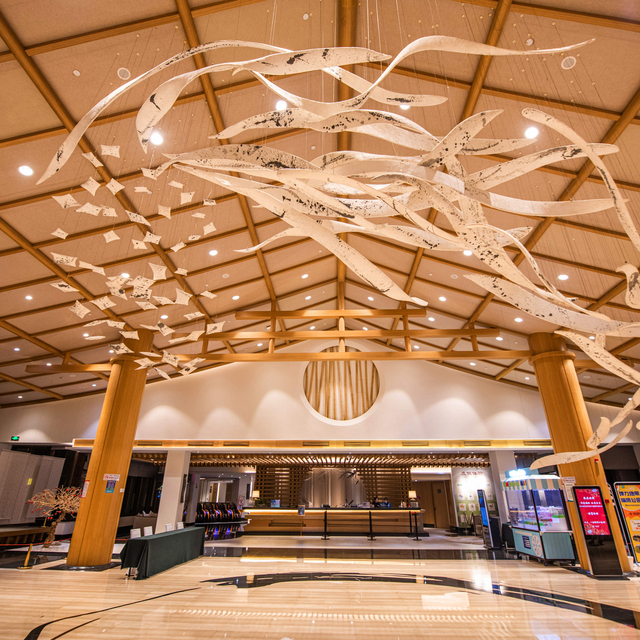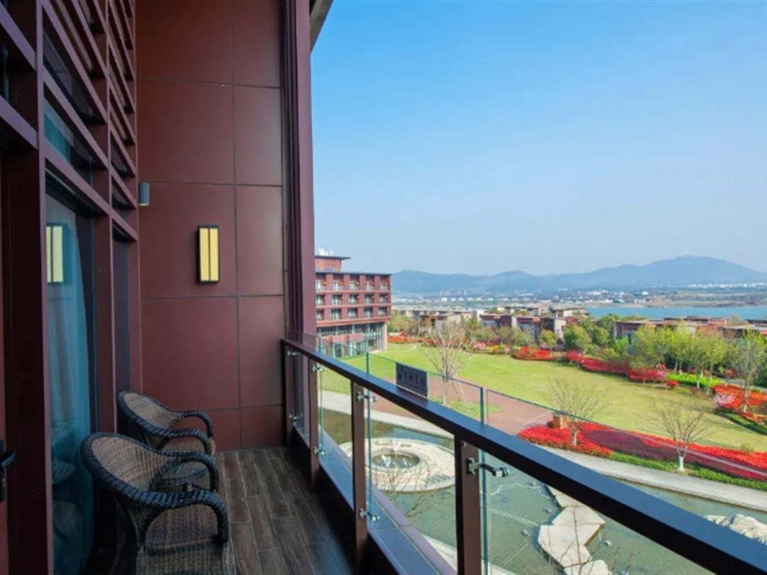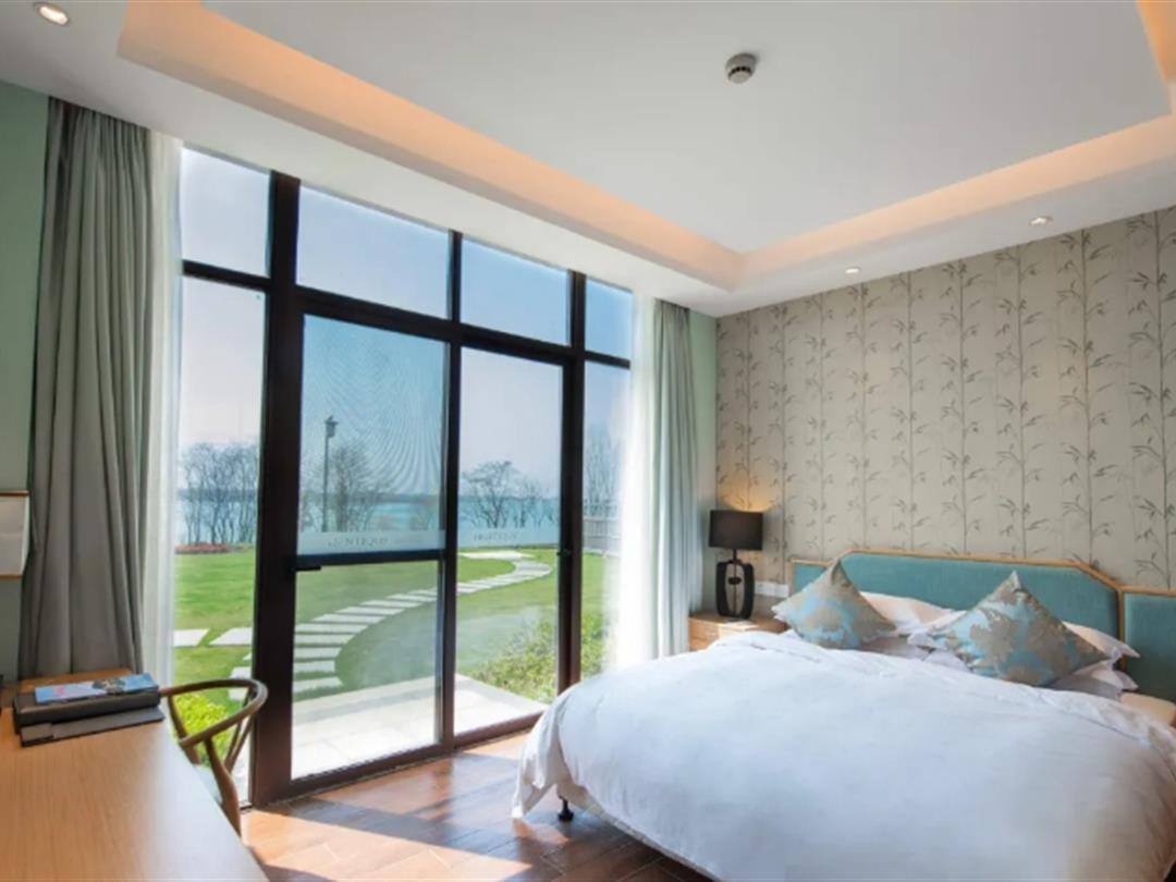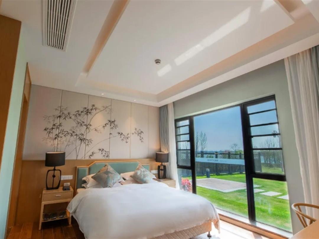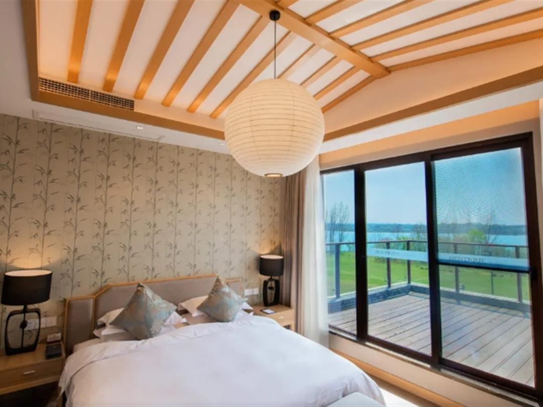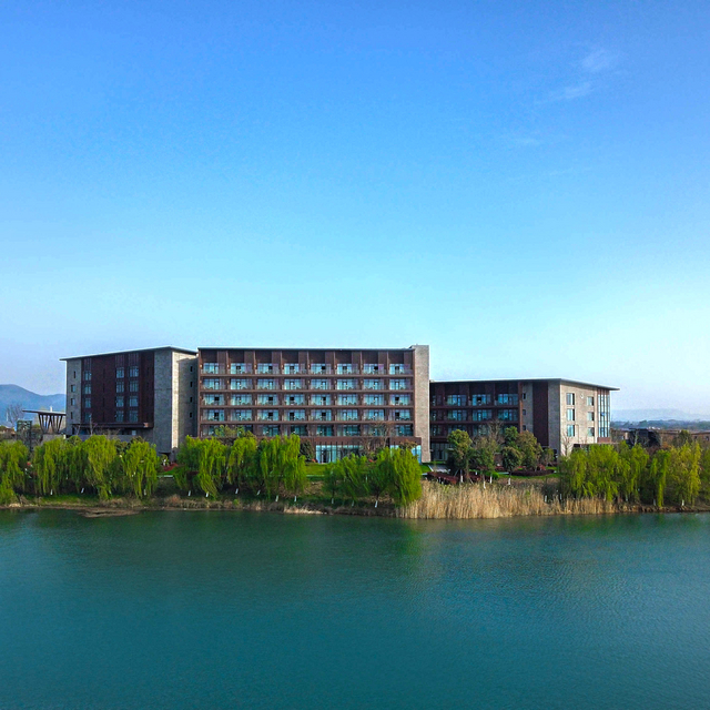 酒店由一栋高档综合性主楼和十栋豪华酒店别墅组成:建筑面积近4万平方米;主楼拥有170间融禅意简约风格的各式客房、4栋湖景别墅、6栋园景养生别墅。