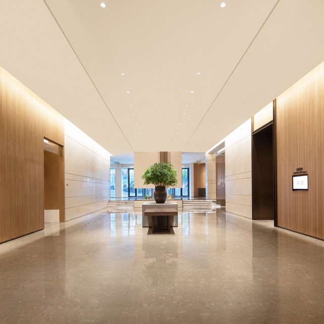 景观由日本凤咨询株式会社环境设计研究所设计,入口处大气精致的"玻璃盒子",充满弧线感的悬挑素砼,恰如好处的光影效果等,勾勒出一座静谧悠然的"城市桃源"。