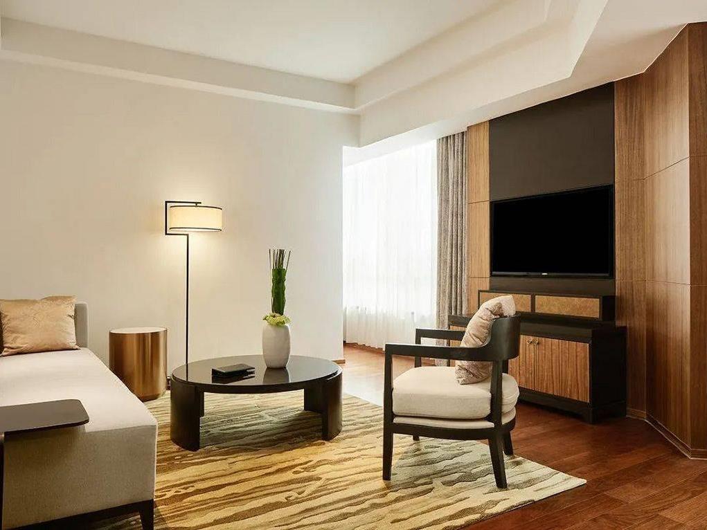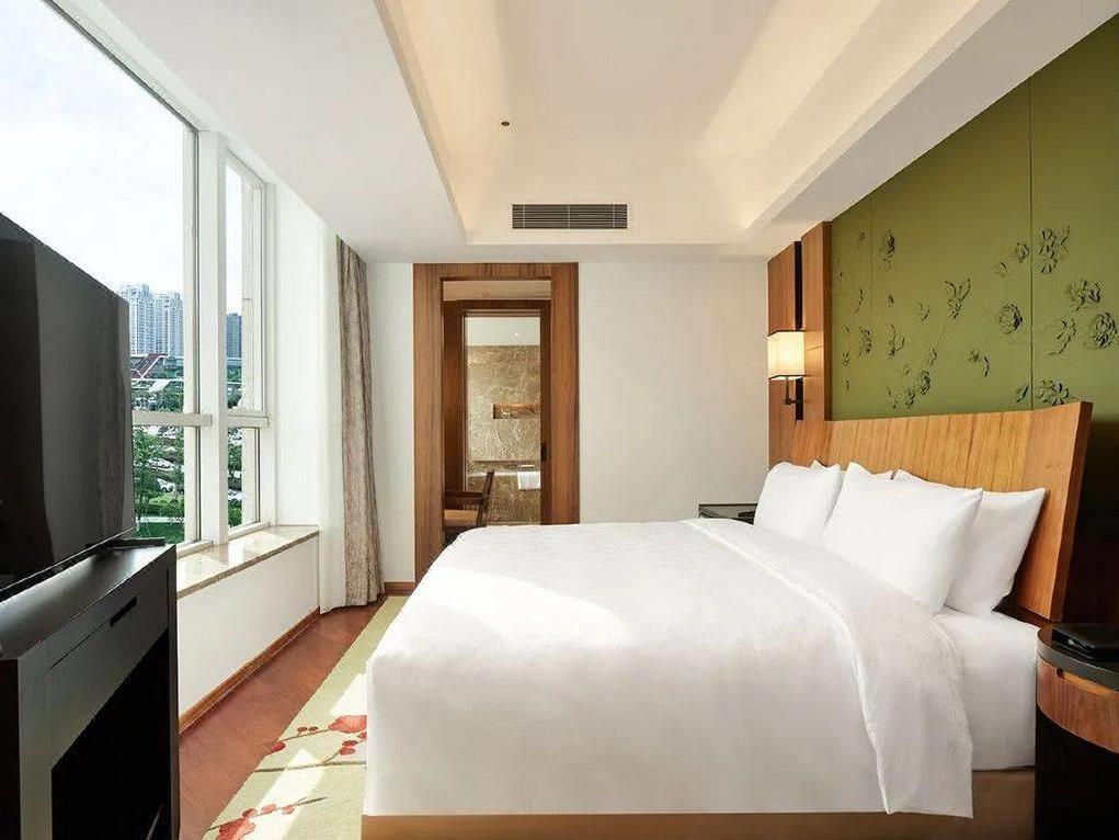 酒店拥有高级、豪华、行政等客房及套房共345间,东方雅致又不失奢华品质。大部分客房以素雅的米色搭配黑胡桃木色,灯笼造型灯具、水墨字画、梅花图样等中式元素点缀期间,温馨又典雅。