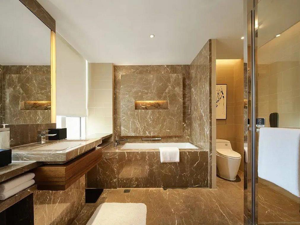 客房41㎡起,搭配明亮的玻璃设计,让空间更加通透,更能一览窗外景色,每间都配备了舒适的浴缸(部分为嵌入式浴缸,部分为独立的椭圆形浴缸)、JBL蓝牙音箱、水疗品牌“Essentiel Elements”备品...就连中式茶具都是特别定制的,细节之处更见品质!