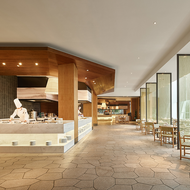 在这里你能品尝到融合东西饮食文化的美食,多个开放式烹饪台,让你在享受美食的同时更能一览大厨们的厨艺秀。