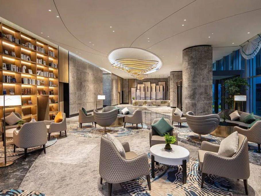 设计师以“水之韵律”和“太湖之水”为灵感,将现代风格与传统江南元素巧妙融合,因此步入公寓内部,大堂宛若一个书吧式的社交空间,既轻松又颇具内涵且熟悉感,桌椅沙发书架墙都是“水”的灵动模样,落地玻璃更引自然光线入内,通透。