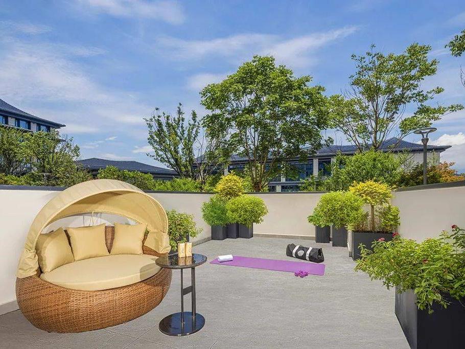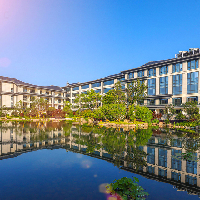 酒店建筑整体呈沉稳大气的方形布局,自带户外花园,园林、小桥、流水...漫步其中,处处可感受江南水乡韵味。