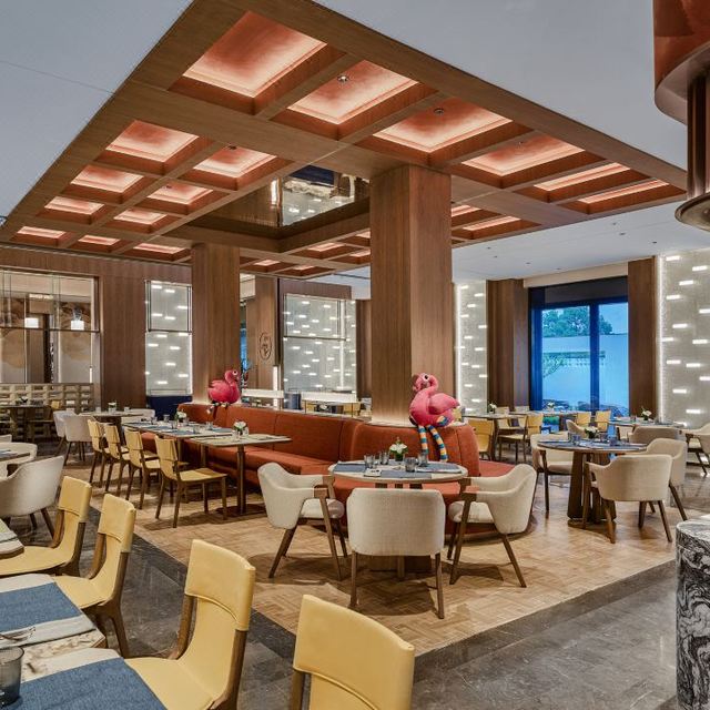 酒店度假设施丰富。遛娃家庭在意的室内儿童乐园与知名儿童品牌可乐果联合出品,打造安全、益智又充满趣味的玩乐空间,滑梯、海洋球、帐篷、摇摇马等玩乐一应俱全,适合小小朋友欢乐玩耍。