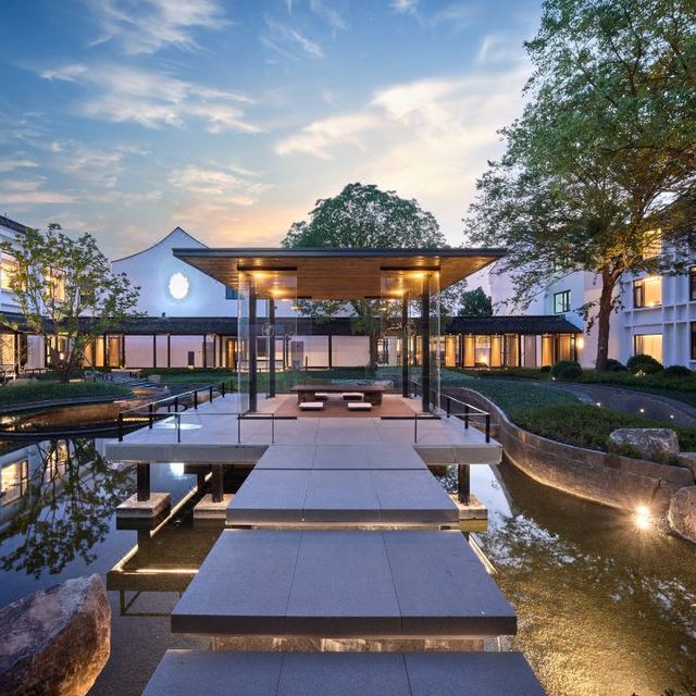 酒店保留了白墙黛瓦的江南古宅的外观。