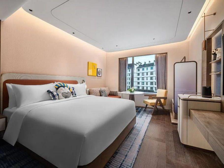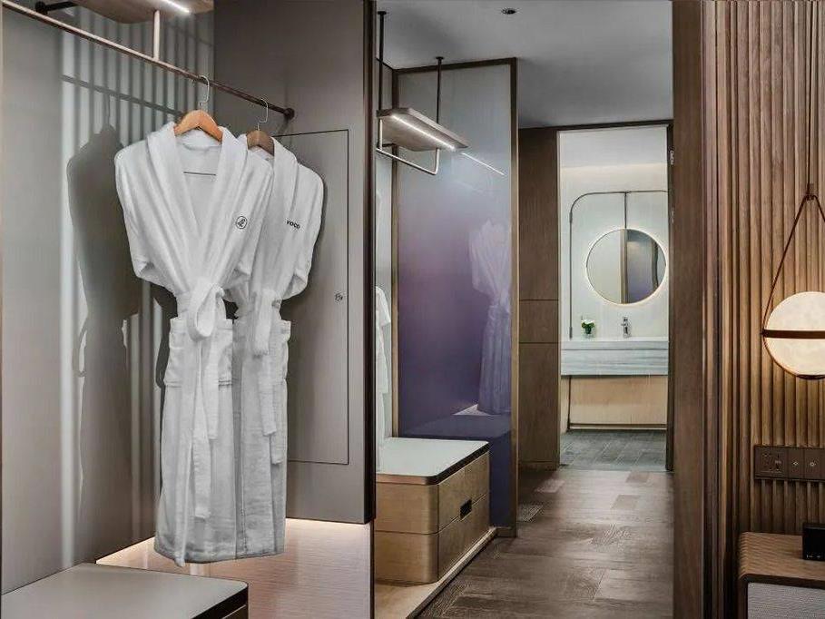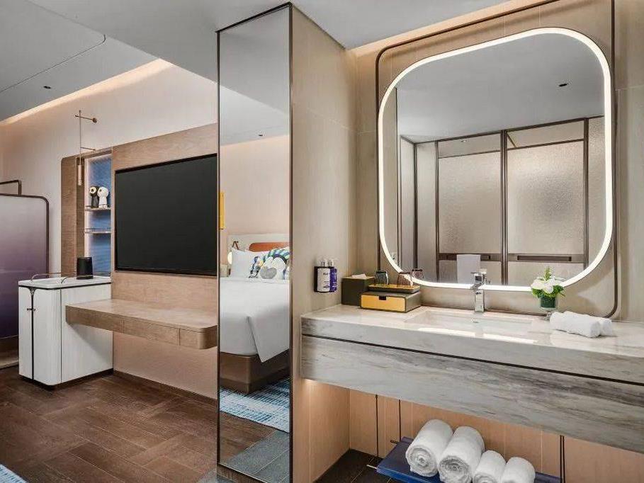 客房配置上,65寸可支持投屏的液晶电视、带USB充电的插头、符合品牌标准的床品、干湿分离的卫生间、Elemis品牌的洗护产品...为你的入住带来更舒适的体验。