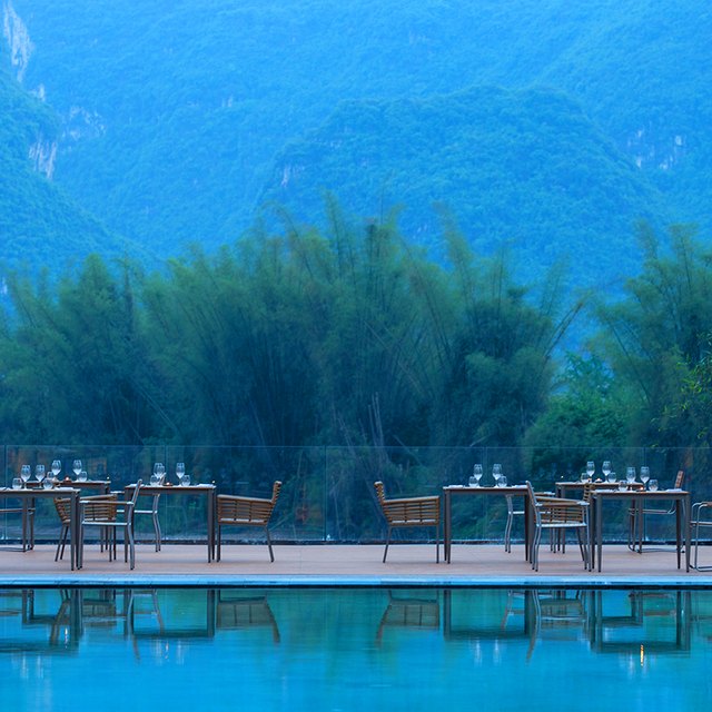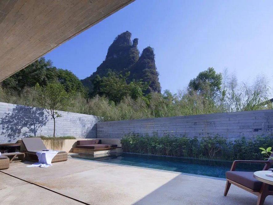 而整个酒店的吸睛处便是位于漓江畔的户外泳池,盛夏季它是大家嬉水畅游的热门地,其它季节,则是拍照取景的打卡地,既可享受青山美景,亦可饱览历史建筑群的时代沧桑。