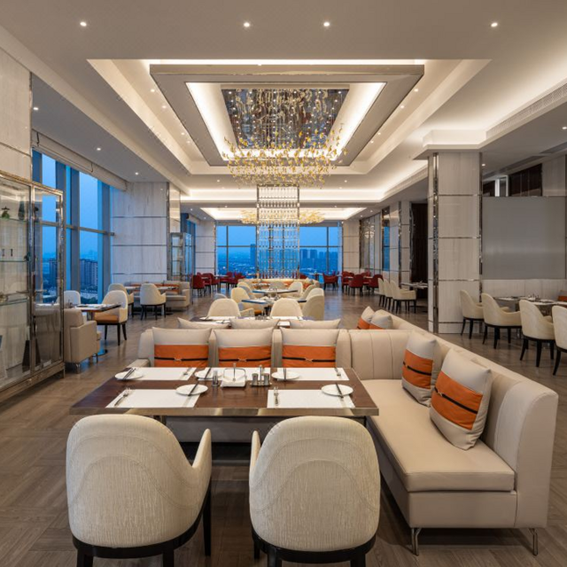悦轩中餐包厢,在4楼。汇聚了杭帮菜、粤菜、川菜等各地特色菜肴,以及高档燕鲍翅等,在色、香、味、形上精雕细琢,每一道出品都是“匠心之作”。内设有18个豪华包厢,满足商务洽谈和高档宴请。