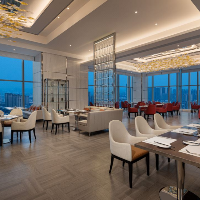 45层云廊吧,供客人放松小憩,除传统茶类、软饮和咖啡,茶吧还设了各种特色茶类、西式点心等。