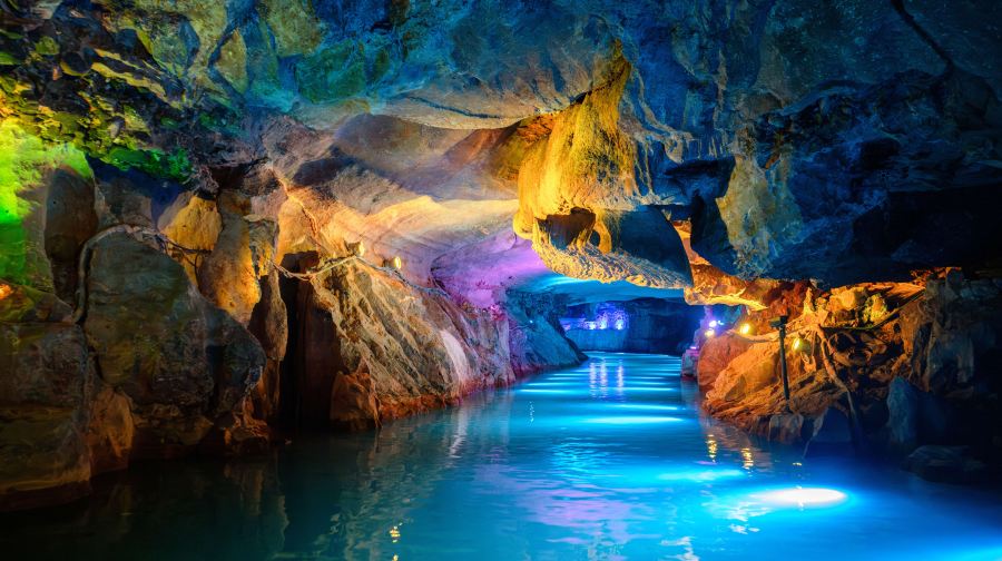 乘船上山在西游幻梦中穿梭,体验恒温18°的神秘溶洞。