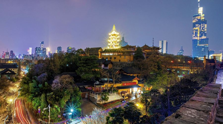 鸡鸣寺也叫古鸡鸣寺,北临玄武湖,始建于西晋,是南京较为古老的佛寺之一。清明时在寺前道路可观赏樱花花海,夏季登上药师佛塔可眺望玄武湖的荷花。