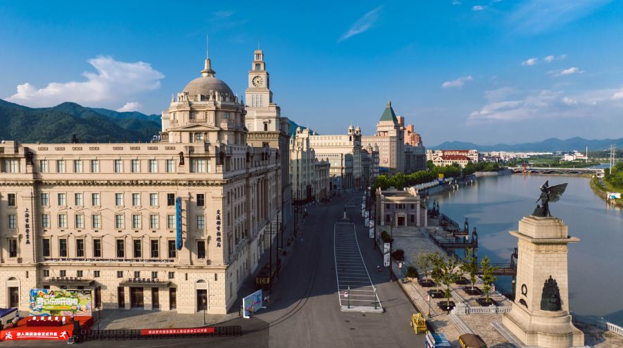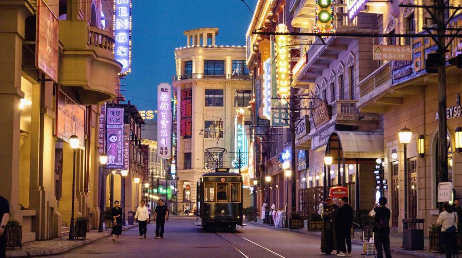 横店梦外滩乐园位于东阳市横店镇都督北街233号,屏湖路南面,都督路西侧,依傍着南江。景区以20世纪30年代至40年代的老上海为主要原型,传神再现了当时的城市风貌,恢复老上海十里洋场的旧时风情,还原和平饭店、汇丰银行、海关大楼、外白渡桥、百老汇大夏、永安百货、上海大世界、天蟾戏院等老上海经典建筑,展示老上海独特的融万国建筑于一处的海派风格,是集电影主题乐园、影视拍摄服务、旅游休闲度假酒店、综合服务为一体的横店品牌特色文化主题景区。横店梦外滩乐园建设以2020年春节为界分为两期,一期有真人秀为《百老舞汇》;3个游乐项目为《电车之旅》之360双曲幕项目、《大闹天空》穹幕影院、《萌想片场》影视职业体验馆;商业有博物馆、文创、微电影、餐饮、副食特产、工艺品、老上海风情体验等。横店梦外滩乐园二期规划有《电车之旅》之灾难体验馆的水特技和火特技、《黑帮追逐》、《影视跳楼机》、《黑暗过山车》、《萌童堡》三楼项目、15-16号楼《电影庆典》、22号楼电影冒险之旅等室内游乐设施及附属工程,以及停车场、轮船、特色商业等配套项目。景区计划于2020年春节正式营业。【主要演艺秀介绍】1、百老舞汇(即将推出)该秀以全新的表现方式,多场景、全景式,具有3.0时代特征的演艺秀。展现上世纪30年代老上海的风貌,让游客有身临其境的穿越、参与、体验感。采用多层次的多媒体、多台全彩激光,通过与水、雾系统的巧妙结合,营造出夜上海的华丽与炫目,诙谐幽默地展现沉重与血腥的黑帮与市井文化。外籍女郎、空中跳水、花样游泳、花样绸舞在梦幻水舞台、水特技的衬托下,形成了浓郁的上海地域特色,华丽的百老舞汇场景配合环绕9.1音效,给人以强烈的视听震撼,沉浸于其中。