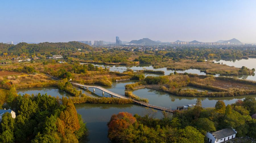 下渚湖·湿地公园号称是中国十分美丽的湿地,进入景区后需要坐船才能游览,船上配有讲解员会一路介绍这里的景点特色、风俗特产等。整个湿地芦苇荡漾、伸手可触,湖岛一体犹如“水上迷宫”。还有各类野生鸟类在这里自由飞翔,偶尔会有几只水禽轻巧地划过水面,一派生机盎然的自然景观,若是夏季,还能看到大片大片的水域上盛开着荷花,阵阵清香扑鼻。下渚湖整个湿地水域中,隐伏岛屿台墩600余座,湖中有墩、墩中有湖;港中有汊、汊中套港,沼泽河汊草滩相连,素有蓄水防洪的“天然海绵”之称,还有800多种动植物在这此繁衍生息,常见的鸟类有朱鹮、白鹭、野鸭、水鸡、水雉、小等。下渚湖又名防风湖,是浙江省第五大内陆湖,也是江南很大的天然湿地。同时,这里也是五千年文明史的良渚文化发祥地之一,是古代防风文化故里,至今防风庙地、碑碣等遗迹遗物尚存。在湖的西北面防风山上,还有防风祠、寿昌古桥、蝙蝠寺、封山十景等景点。