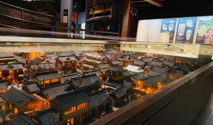 主楼主要有三层,设有陶瓷馆、青瓷馆、漆器馆等展馆,一楼主要是展出一些陶器,二楼、三楼主要是瓷器,二楼主要是一些越窑瓷、龙泉瓷等,三楼是明清以后或更加晚期一些的瓷器。