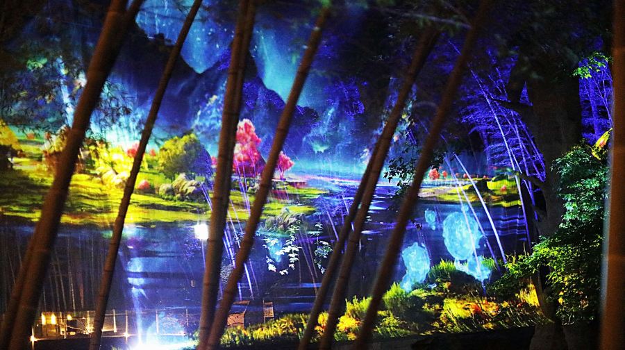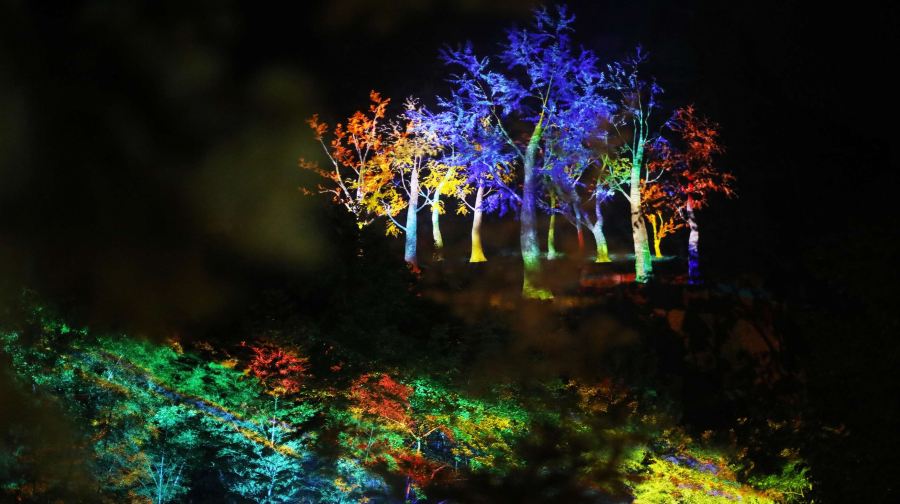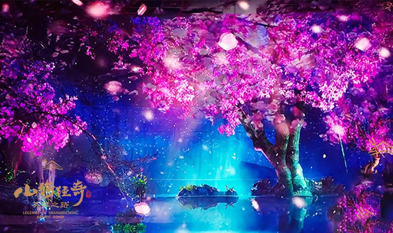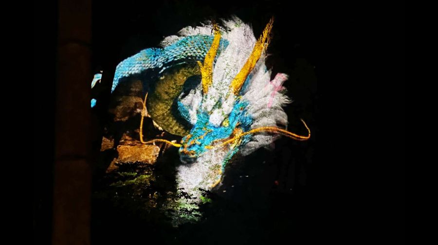 “山海经奇英雄之路”位于浙江省绍兴市新昌县十九峰风景区内,以十九峰特色自然生态景观,以天然崖壁为幕、奇幻幽谷为景,以中国传统文化奇幻典籍《山海经》为原型,主游路线全长约2.6公里,包含 “混沌世界”、“怒触不周山”、“英雄现世”、“化熊抗水”、“青丘九尾”、“山川命名”等主题场景来讲述大禹治水的故事。利用全息投影,3D mapping、体感互动、线上线下游戏交互体验、激光矩阵、艺术装置等全球多媒体技术,结合雾森、灯光、置景、影像、音乐等声光电元素,打造一场集视觉、听觉、触觉为一体的光影盛宴,为游客提供一个窥察世界全方位的视角,在这个遥远而磅礴的神秘世界里寻觅灵感,感受中国传统文化魅力。