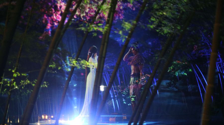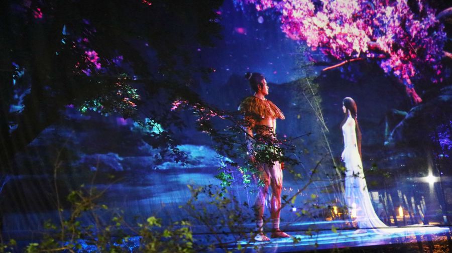 “山海经奇英雄之路”沉浸式奇幻秀,是由中国的传媒力量携手国际视觉艺术团队倾力打造,以央视纪录片《山海经奇》IP 为主题的系列沉浸式夜游项目 ,其中《大禹治水》作为开篇亮相在绍兴市新昌县十九峰景区。