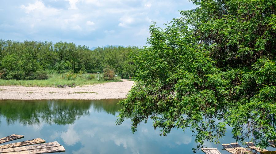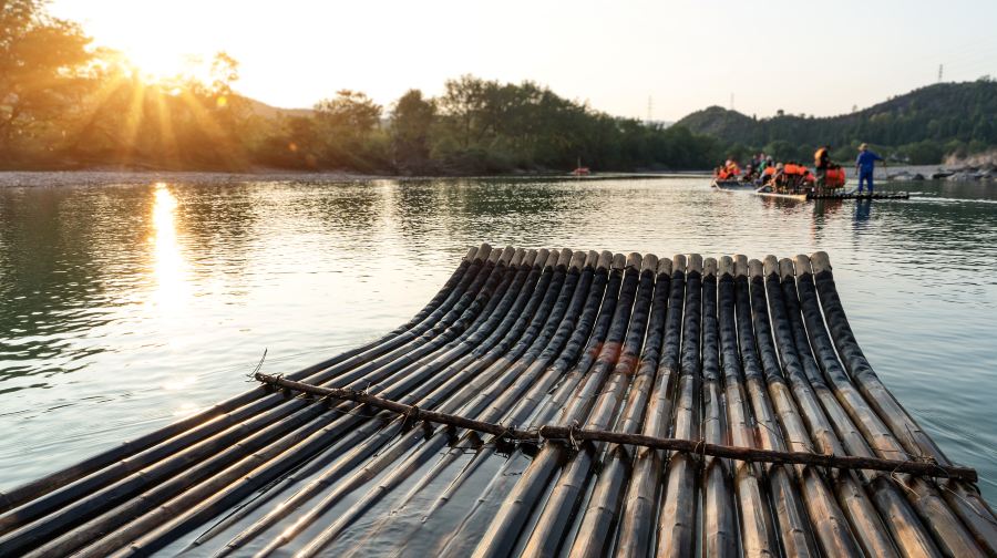 永安溪是仙居的母亲河,现开辟的永安溪漂流河河段总行程7.68公里,以仙居土产的特制的竹筏作为工具,“小小竹筏溪中游,巍巍青山两岸走”。乘一叶竹筏顺流而下,或如履平地或急穿险滩,远离城市的繁华和喧嚣,碧水、蓝天、远山能让人品味到似水柔情般的逍遥温馨和两岸奇趣横生的田园景色。码头:是永安溪漂流起点码头,位于距仙居县城8公里处的步路乡西门村,四周风景秀丽,交通十分便捷,整个码头建筑古朴典雅,风格独特,亭台楼阁错落有致,那长廓飞檐、红柱青瓦、鹅卵石墙面的候排厅让人耳目一新。码头仿毛竹的栏栅围墙秩序井然,绿化有序,这里也是游客候排,休憩的理想场所。快活林:该景点位于漂流中段,北边紧靠永安溪,南边连接一片郁郁葱葱的大竹林,林中栖息着各种各样的鸟,如长嘴巴鸟、白鹭等。一年四季花香鸟语,是一处难觅的世外桃源,也是漂流途中仅有一处可供游人上岸休憩的场所。景点内有点心、茶水、旅游用品、纪念品等各种商品出售,还有一年各个季节的水果,农副产品等也偶有上市,在这里还能亲身体验一翻脚踏农家水车的感受。