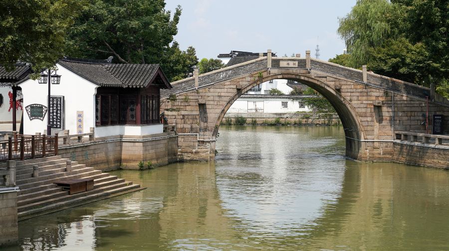 枫桥景区位于苏州古城以西的运河畔,以枫桥、苏州市枫桥风景名胜区-铁铃关、枫桥古镇、古运河(京杭大运河的一段)为主要游览内容。唐代张继的一首《枫桥夜泊》,从古至今使无数游人前来怀古,体会枫桥下听寒山寺传来钟声的空灵意境。需要强调的是,虽然无数介绍都说枫桥景区包含了寒山寺,可这两者真心不是一个景点,不亲民地分开售票。枫桥景区的附属景点占了景区绝大部分的面积,基本都在南北走向细长型的江枫洲上,江枫洲有桥与陆地相连,东边是寒山寺,当中隔了条不宽的河道。铁铃关与寒山寺在同岸,与紧邻铁铃关的枫桥一起,位于寒山寺外的西北角。景区有三个入口,南边离何山路、金门路较近的何山入口,中间寒山寺山门附近的江村桥入口,北边的铁岭关入口一进去就是主打景点铁岭关和枫桥。公交车站在金门路上,所以坐公交来的游客建议从何山入口近,否则要沿着外面的围墙绕好远到另两个入口。自驾或者坐出租的游客可以让车停到寒山寺-东广场,然后从铁岭关入口进直奔重点。江枫洲的南边是绿化带,稀疏地开辟了几个园林、厅堂,北边是枫桥古镇,都是仿古新建的。以前这里确有古镇,因为是运河和古驿道的交汇处,商贾云集,在明清时空前繁荣,后毁于战火。你可以看下镇上的几个展厅,漕运展示馆里看船模,江枫书院里看画展,枫桥苑里的微缩模型《枫桥胜迹》再现了明清时枫桥一带的繁荣景象。几座桥也值得留意,寒山寺山门附近的江村桥,是一座清代重建的古桥,据说“江枫渔火对愁眠”的“江枫”一指江边的枫树,二指江村桥和枫桥。木质廊桥苏州市枫桥风景名胜区-听钟桥上拍摄枫桥和铁岭关的角度很好。整个江枫洲北端的牌坊惊虹渡下,可以看到古运河上船只往来的繁忙景象,斜对岸就有个货船码头。从听钟桥往东走不远就是枫桥,枫桥前临着河道有几格台阶,据说是张继当年的夜泊处。枫桥始建年代不详,我们现在看到的是清同治六年(公元1867年)重建的。走一走这座单孔石拱桥,桥的台阶一直延伸进铁岭关的门洞内,石台阶被踩得光滑,边缘坑洼不平,你可以清晰地感受到岁月的流逝,以至让如织的游人在石头上留下印记。苏州市枫桥风景名胜区-铁铃关始建于明嘉靖三十六年(公元1557年),为苏州现存的一座抗倭关楼。铁岭关下部石头基台仍是明清古物,爬山虎覆盖在基台上,也好像在诉说岁月的斑驳。关上楼阁是现代重建的。游人可以通过一人宽的楼梯登上关楼,在上面俯看枫桥古镇,眺望寒山寺的普明宝塔。如果你购买了门票和评弹游船的联票,在铁岭关下的码头可以坐游船,船悠悠穿行过桥洞,让会一把“到客船”的感觉。另外,游船上还有评弹表演可看。若要去寒山寺,铁岭关向南穿过卖工艺品的古街寒山寺弄,走个100米不到就是寒山寺山门。或者江枫洲上过江村桥,江村桥上就能看见寒山寺,走过去没几步路。