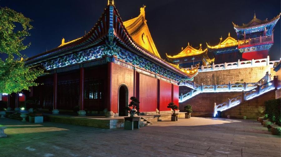 依山而建,层层叠叠,雕梁画栋,气势恢宏。