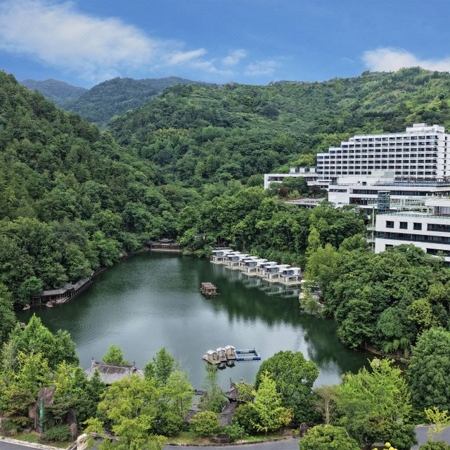 酒店一期有360间套客房,含主楼客房(看山景或湖景)、特色Loft 亲子房及太空舱别墅,二期将配套天然温泉(在建中)。客房为新中式设计,览湖景,或看山景。