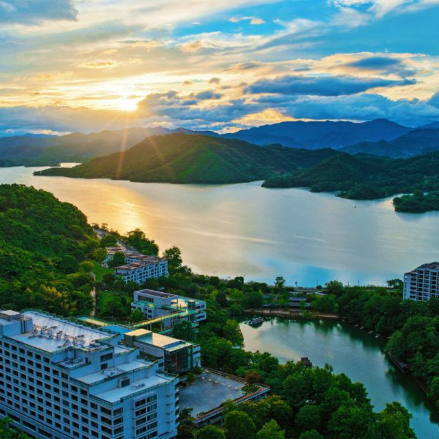 今年全新开业的千岛湖燕山君澜度假酒店,历时10年总投资10亿元,建筑面积7万平米,虽然不是千岛湖一线湖景,却独享一片湖光山色。