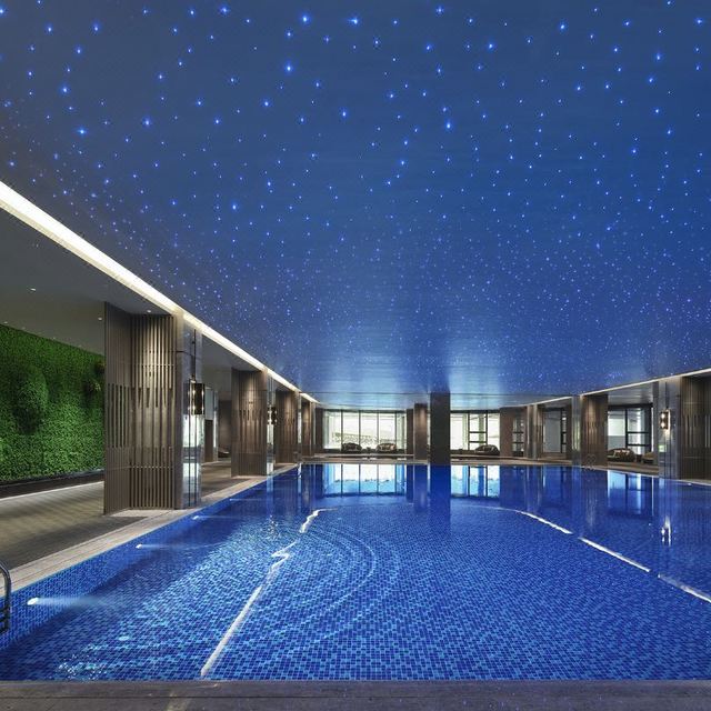 室内恒温泳池面积高达1800㎡,四季恒温,让你无畏天气,尽情享受游泳的快乐。闪烁的星空顶,仿佛让人畅游在星空之中!