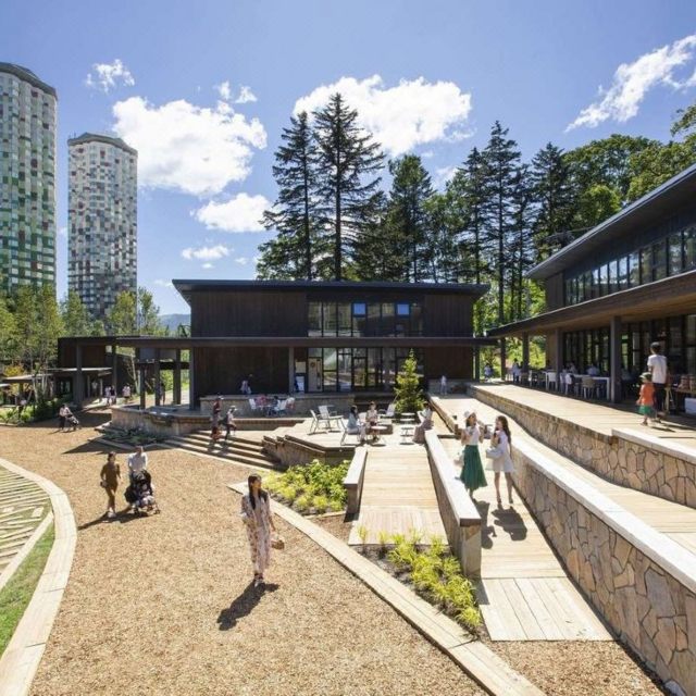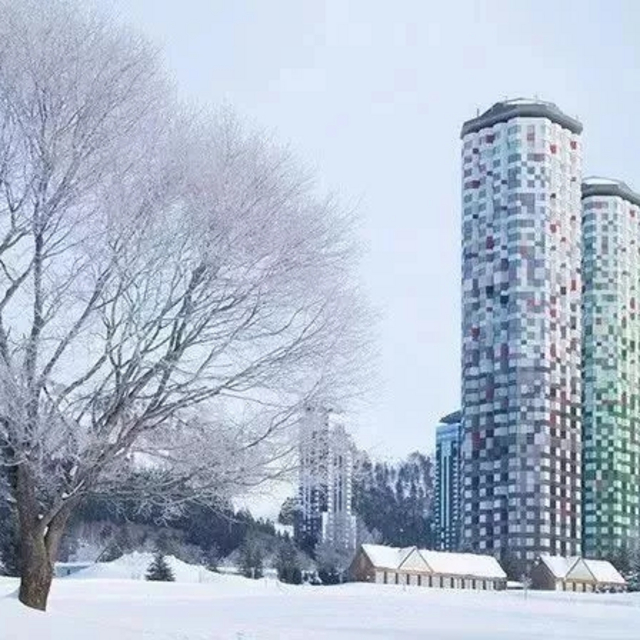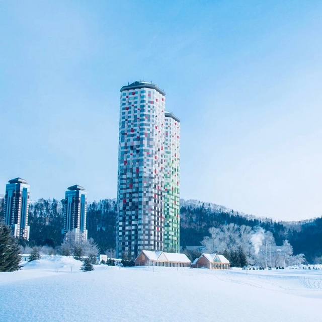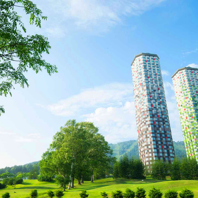 星野TOMAMU度假村Tower塔娃酒店1986开业,2006年则聘请欧洲知名建筑师 Astrid Klein Mark Dytham对大楼进行外墙改装,将大楼天际处用接近冬雪的白色,近地面则用夏季森林的绿色及秋季果实的红色错落点缀,使两栋摩天大厦与北海道森林与自然色彩融为一体。