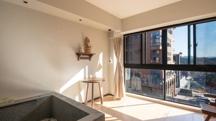 酒店以温泉入户的套房为主要房型,设计以大地色为基调,以各种艺术品作点缀,格调唯美,情趣悠然。