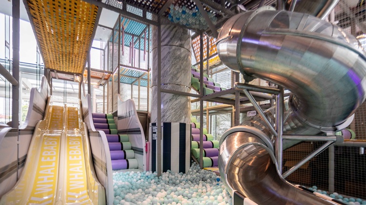 大堂有个鲸宝贝成长乐园,多巴胺的配色,超大的海洋球池,滑滑梯、蹦床、沙池、摇摇马.....多种游乐,快乐无限,孩子们一看到就玩疯了呢~