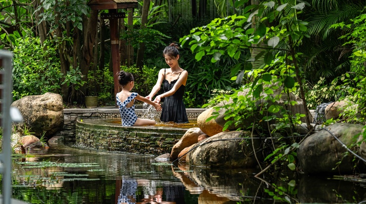 数量也多,足有28个户外园林式仙境温泉,还根据意境、养生、花韵三个主题,打造出不同的主题温泉,简直让人挑花眼,花香氤氲的美人汤池很适合美人入水,花香四溢,惬意非常。