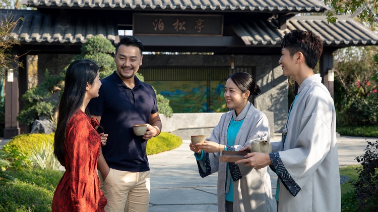 泊松亭、翠竹林、画影桥等十一大文化沉浸式场景,文化空间、健身房、恒温泳池,滨溪曲道都是客人放松身心、重焕活力的好去处,让我们与山水对话,与自然同行。