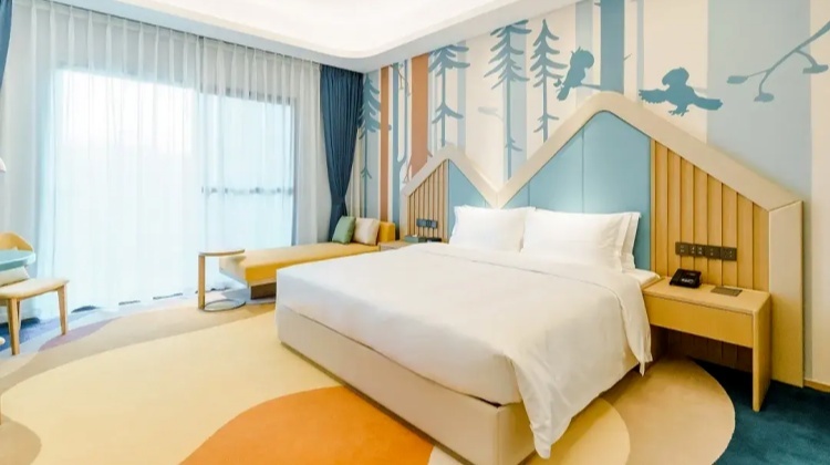 一进酒店,映入眼帘的是如阳光般鲜活的橙色,“熊出没”卡通IP主题,有着小朋友童年的“玩伴”熊大、熊二,大堂弥漫着温暖、幸福、浪漫的度假氛围,让您在酒店度过愉快的假期。
