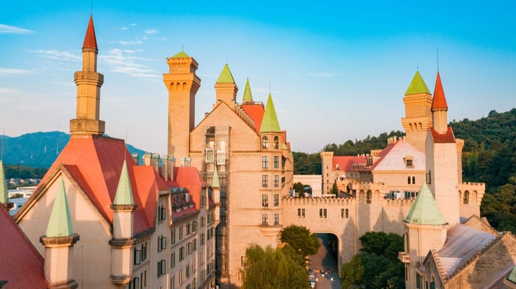 园区有八栋独立的欧式城堡建筑组成,形象类似19世纪晚期德国巴伐利亚天鹅堡兴建,是目前华东地区很有规模的哥特式城堡建筑群,其优雅浪漫的欧式建筑和钟灵毓秀的富春山水融为一体,让国人不出过门便能感受异域风情,圆一个梦幻城堡之旅。