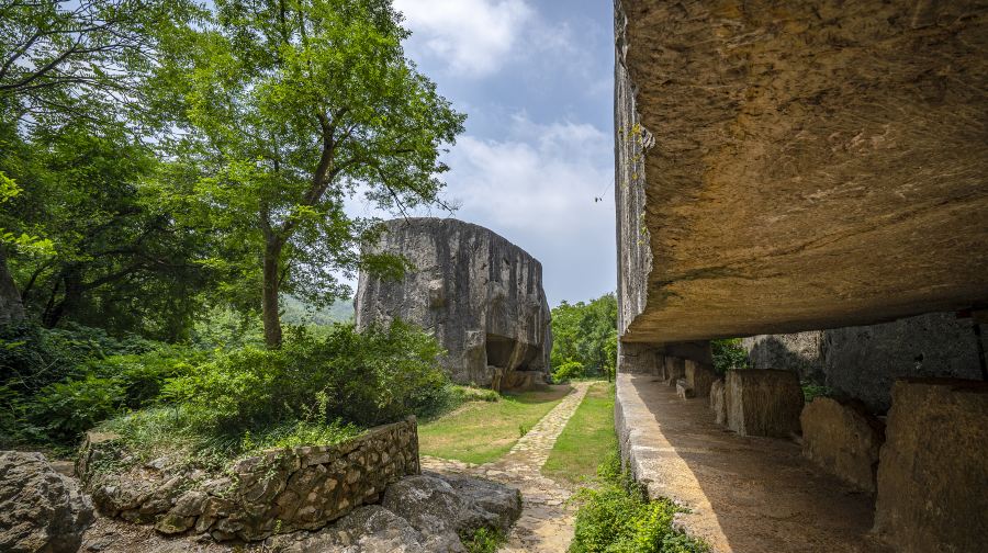 阳山碑材位于南京市区以东23公里处的阳山南玻,这里在明代以前就是古采石场,石碑的三个部分碑座、碑额、碑身均已能看出形状,可受条件限制却没有组装起来。这也使得今天我们得以一观这个历史上大的烂尾工程之一,石碑的三部分若组装起来,将高达73米,确实令人叹为观止。