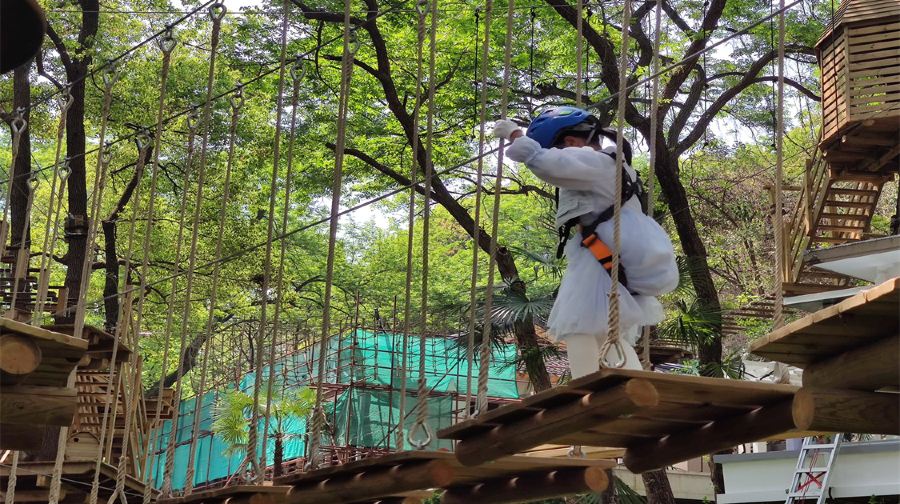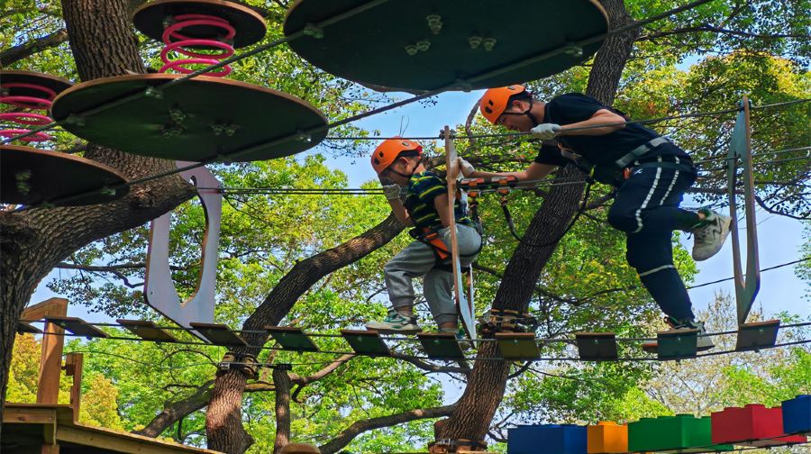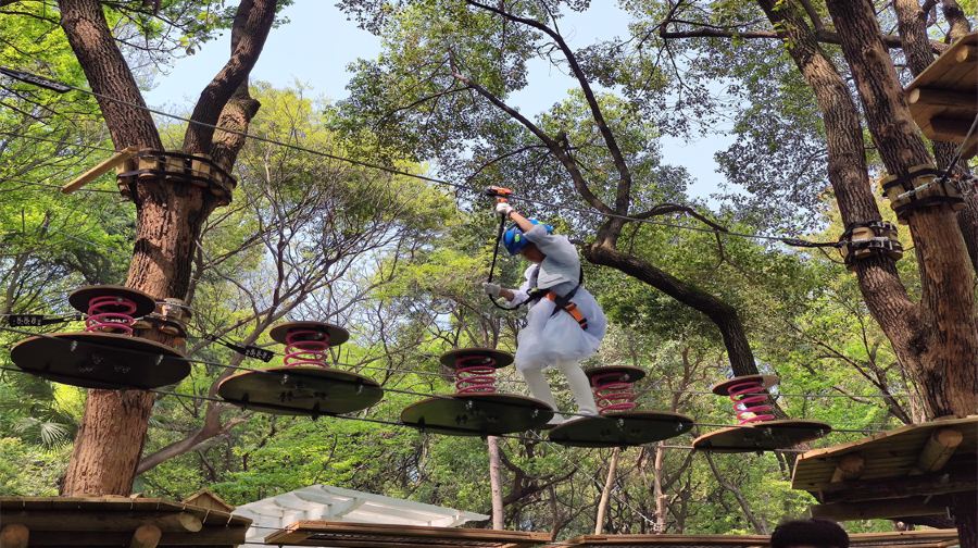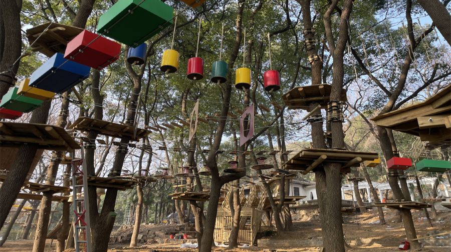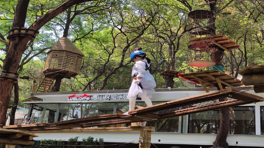 Welope惠山探险乐园是集森林探险、休闲娱乐为一体的户外冒险乐园。乐园由法国设计,原装引进,小至螺丝钉,大到木板钢丝均引进法国。设备选用来自法国专业安全设备公司研发的生命线安全系统。目前园区一共设有六条高空树上探险线路,每条线路都设有不同的关卡以及对应的等级,等级越高难度系数也就越大,每一条线路都可以根据线路身高要求自由挑选。