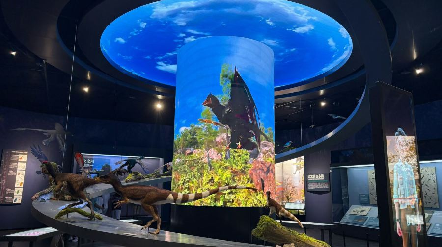 依托中国科学院古脊椎动物与古人类研究所、中国古生物化石保护基金会科研力量,本馆与国内数字技术头部团队合作,研发制作出一套拥有自主知识产权的多媒体互动展项,成为中国恐龙“活化标签"。数字多媒体新技术新成果的利用,其沉浸式效果会让观众感受到数字化博物馆的科技魅力。