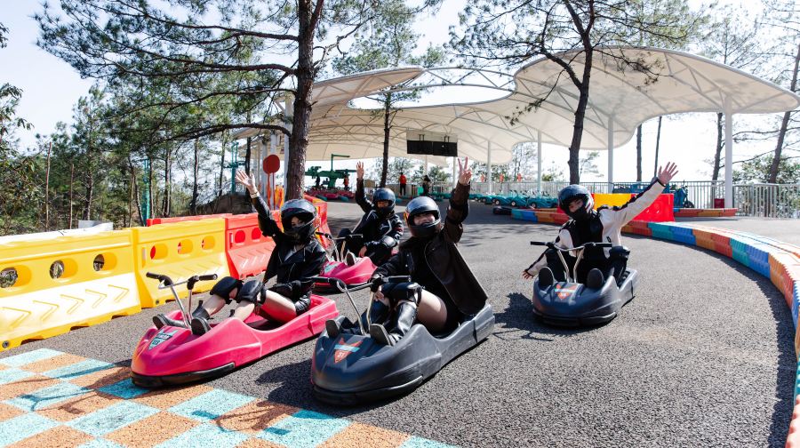 路极飞车是一项以无动力车为载体,沿着特殊设计的封闭赛道,依靠重力和坡度滑行的山地运动项目。路极飞车全长5公里,六大专业赛道,可供游客开启不同的竞速模式,享受山野和风。
