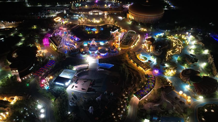 园区分为三大主题区:车行区、步行区和船行区。车行区以大规模野生动物放养和非洲主题树屋为特色,游客不仅可以自驾与动物零距离互动,还能留宿与长颈鹿成为邻居。步行区以动物展馆为重点,八大区域:亲子乐园、欢乐世界、奇幻丛林、山谷奇境、国宝家园、树梢王国、非洲印象和精灵王国。在这里不仅有东北虎、亚洲象、长颈鹿、金丝猴和斑马等珍稀动物,还有国际大马戏等精彩剧场演出。船行区以船越侏罗纪探秘为亮点,穿行于雨林觅踪、密西西秘林、列岛奇缘和奇洞掠影,沿途观看大羚羊、美洲红鹮、丹顶鹤、火烈鸟等动物。