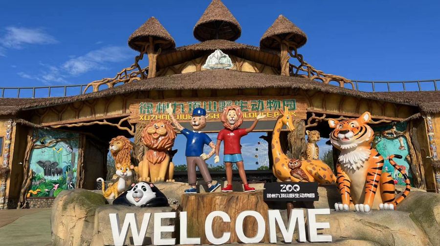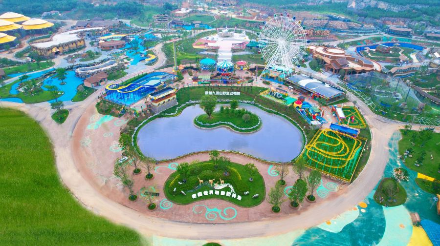 徐州九顶山野生动物园位于淮海经济区中心城市--徐州。景区地理位置优越,距徐明高速双沟东出口仅8.6公里,距观音机场30分钟车程。 占地3400亩,计划展出世界各地濒危珍稀野生动物300种类,近两万头(只)。作为淮海经济区内重要的动物主题文旅项目,徐州九顶山野生动物园依托丰富的山水资源规划建设,打造出集野生动物观赏、国际马戏演艺、亲子游乐互动、主题酒店体验、休闲观光度假、科普研学教育为一体的沉浸式综合度假区。