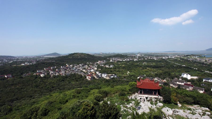 出洞后遇岔路,指向道隐园的路将带你绕回林屋洞的入口,指示牌旁的一小片摩崖石刻就是“道隐园”,走指向山顶驾浮阁的路,爬到山顶约需20分钟,山道两旁种有梅花。驾浮阁供奉道教神仙,高层第三层中间的大钟可以免费敲,外围的走廊是好的观景点,可以远眺太湖,俯看梅园花海如轻纱薄雾笼罩在山脚,很壮观。驾浮阁东边的碧螺亭也可以观景。