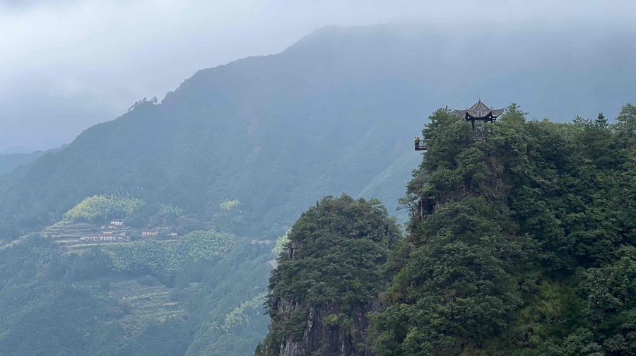 继续往前,沿路会看到石猴、神龟探海等造型奇特的石头。走过一线天、竹海,山峰变得陡峭起来,脚下的台阶也变得又长又陡。当你走过廊桥,远远便能听到九级瀑布的轰鸣声。九级瀑布的水量还是很大的,顺着步道越往瀑布下方走越好看。尤其是雨天过后,看起来更是壮观。如果要拍照,一定要当心水花溅到相机,有时候水雾大,可能也影响拍照效果。