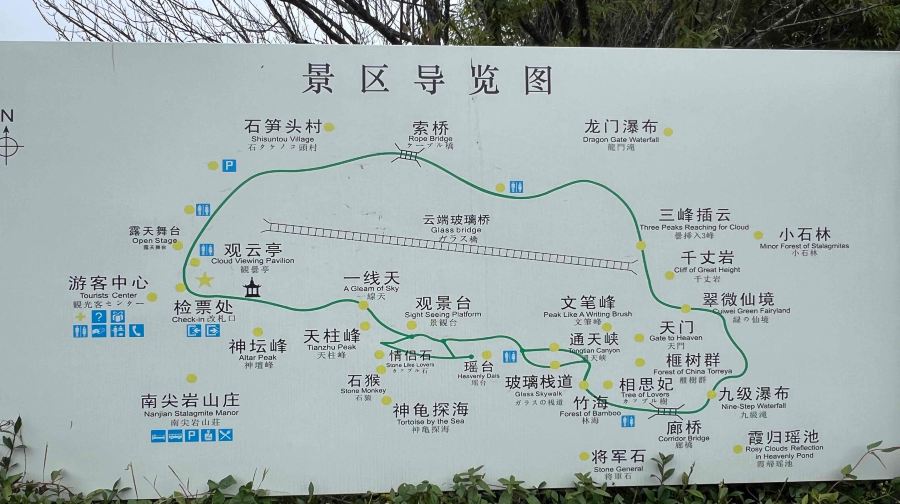 接着是三峰插云,是三个耸立的石笋山,造型错落有致,算得上是南尖岩景区的标志景点。再往后的游程便没有太多看点了,走过一段索桥,回到景区入口。整个游程大约两三个小时。 游完南尖岩景区,可以在石笋头包辆车去看旁边的神龙谷和千佛山景区,一天包车价在300元左右。