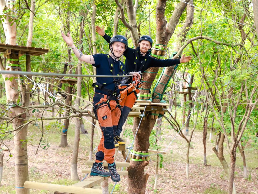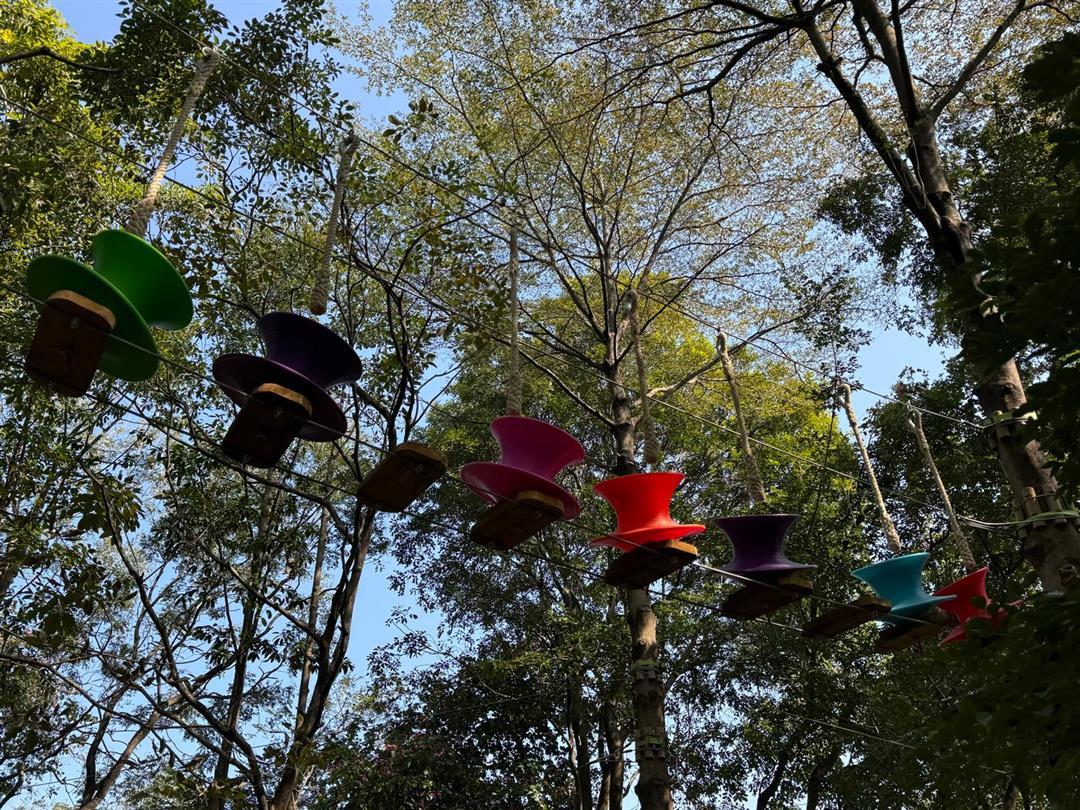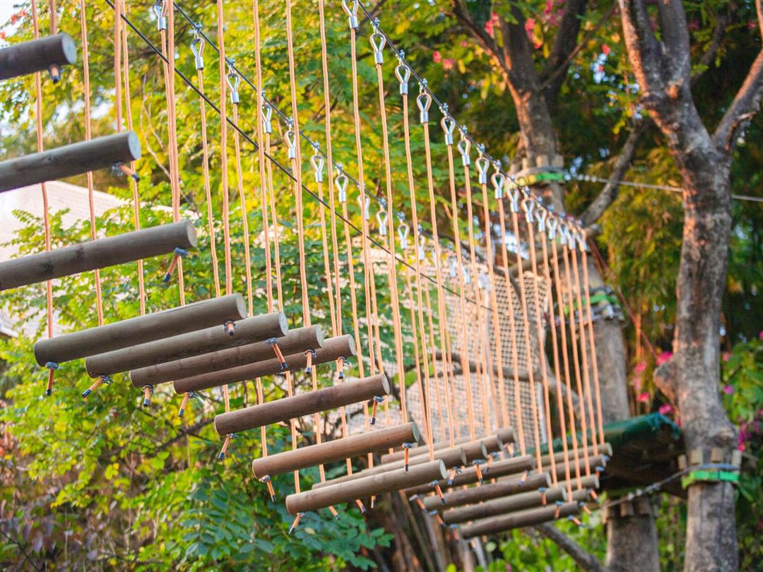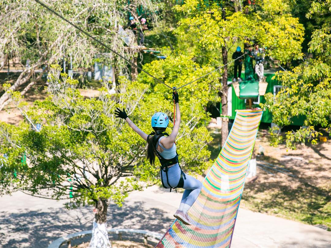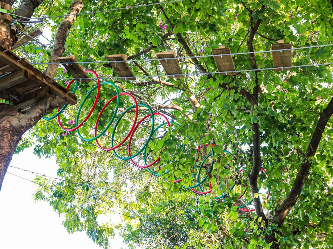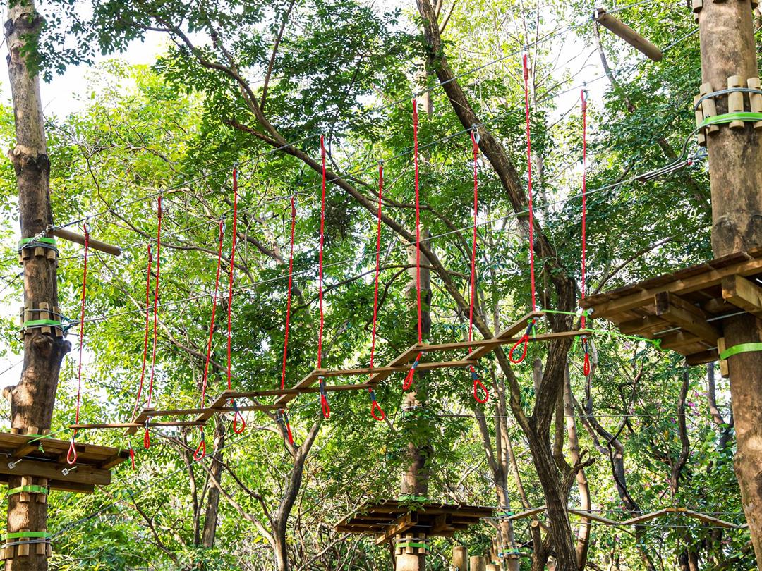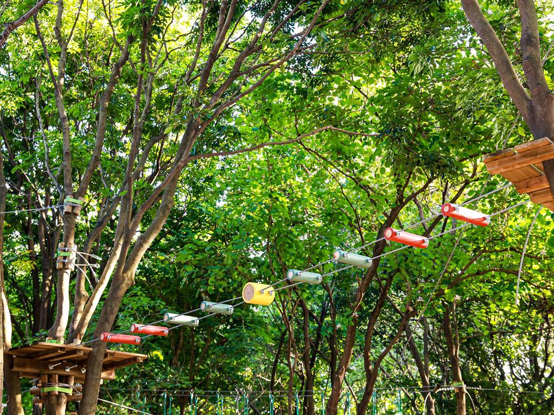身高1.2米以上可体验,20个关卡难度适中,适配想尝试轻度挑战又不愿过度耗力的游客。标志性空中秋千让你悬浮于丛林之上,微风拂面间仿佛置身云端,悠哉享受空中漫步的惬意。