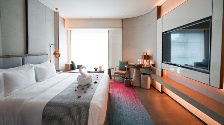 酒店坐拥豪华海景,约70%的客房可临海凭风,视野极为开阔,站在明亮的玻璃幕墙前,尽揽环岛路的绝美风光。点一杯微醺的红酒,燃一支雅致的香薰,静躺在洁净的白瓷浴缸里,观潮听海,一点点忘却烦忧。