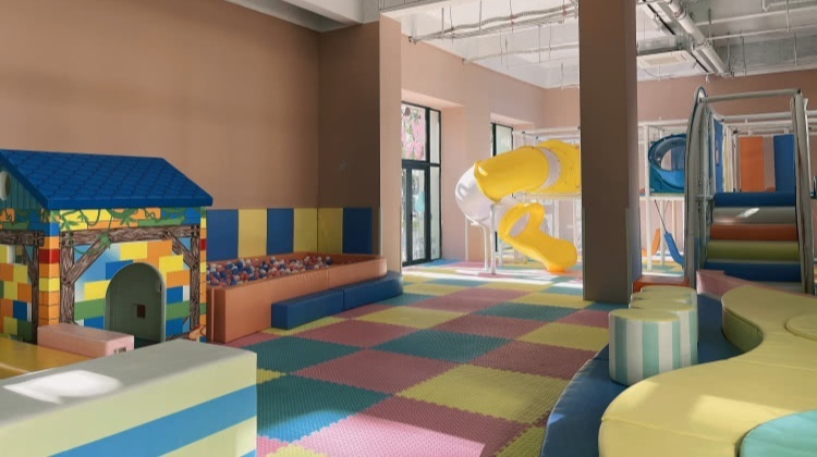 此外,酒店还有个室内儿童乐园,铺满软垫安全感满满。有孩子们喜欢的滑梯、秋千、海洋球、蹦床。
